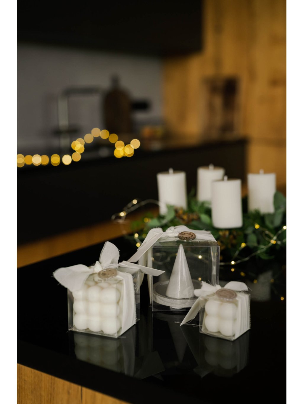 Svíčka v bublinovém designu ve vánočním dárkovém balení.