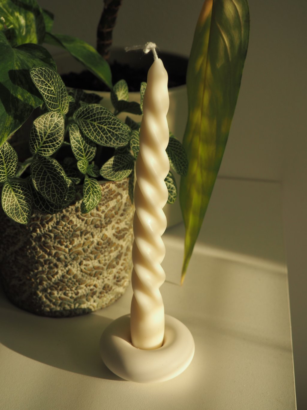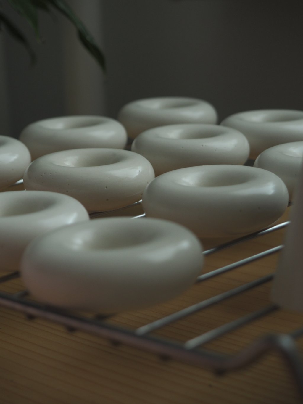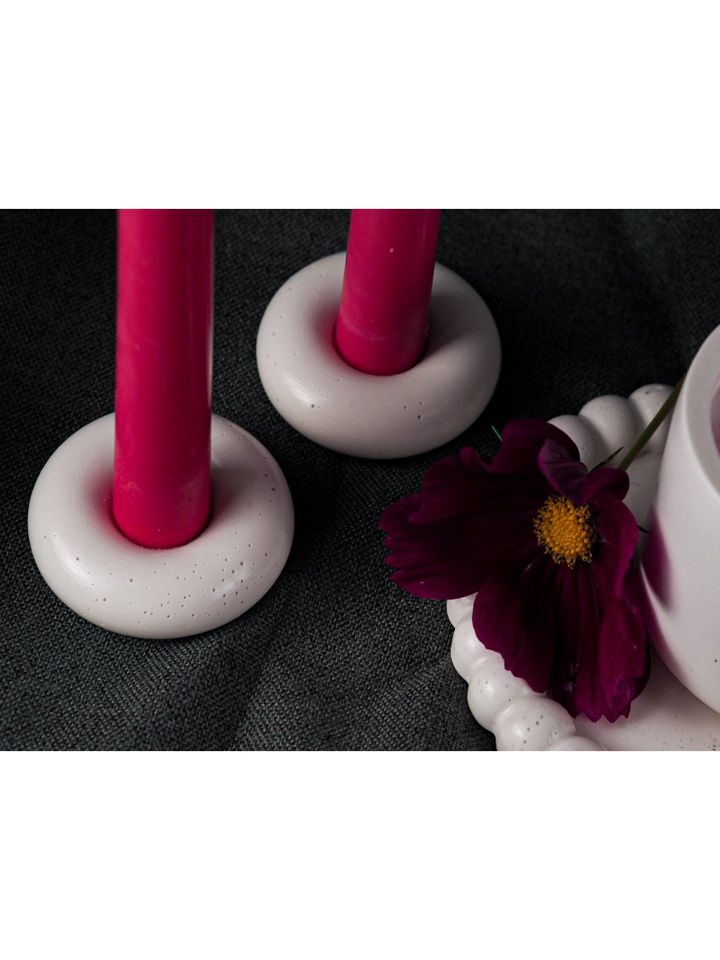 Svícen vyrobený z ekologické pryskyřice ve tvaru donutu.