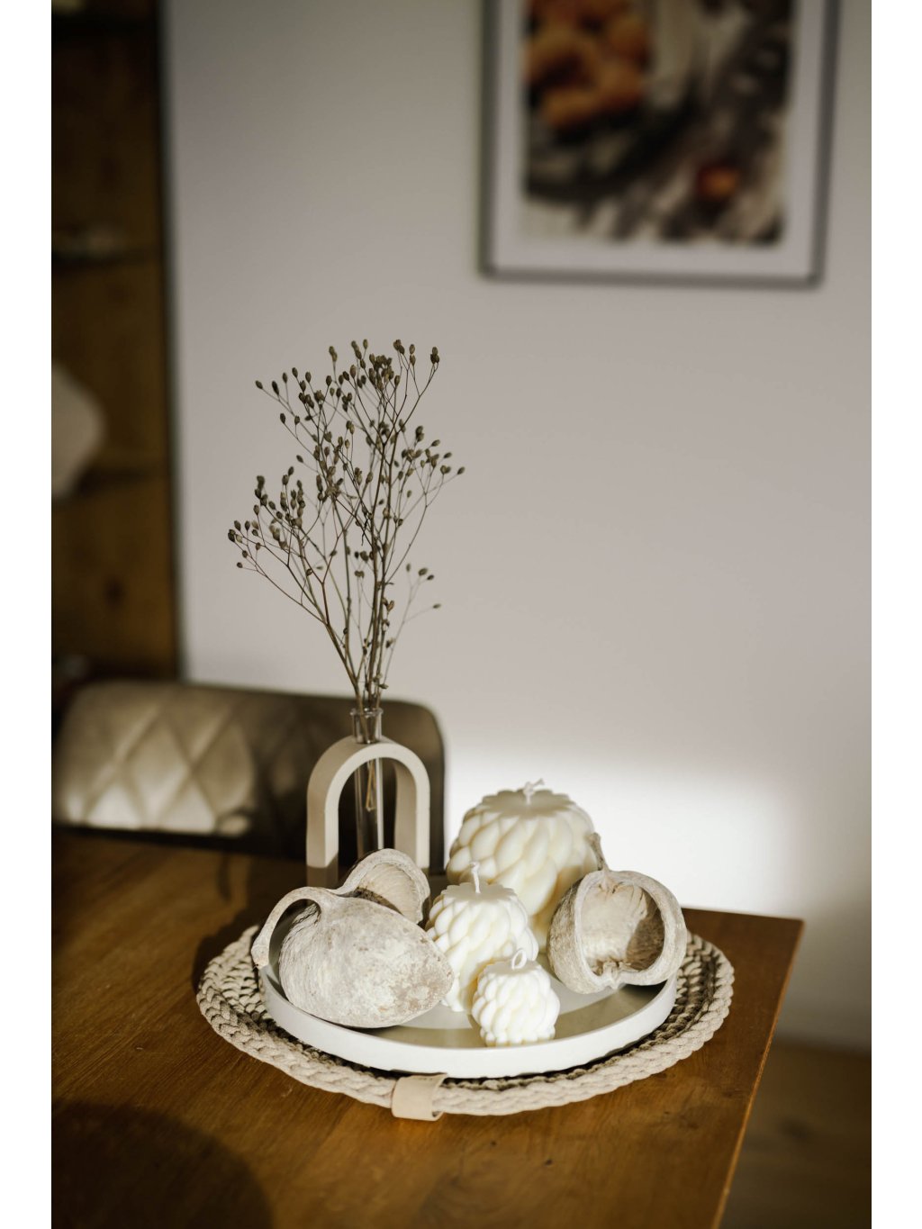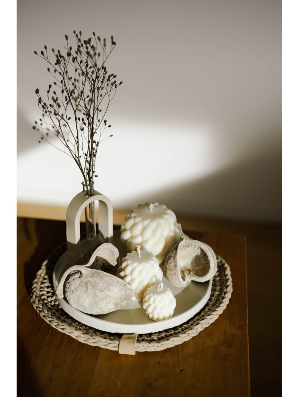Dokonalou sadu dekorací vytvoříte kombinací svíček s našimi talíři, tácy nebo podtácky vyrobených z ekologické pryskyřice.