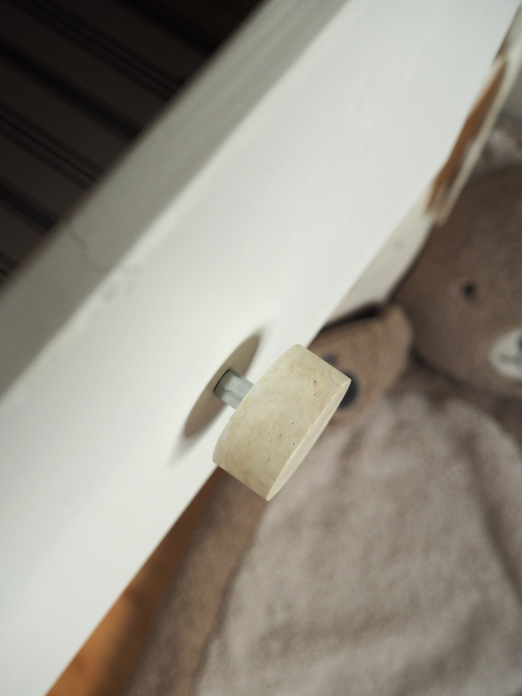 Tyto válcové úchytky z ekologické pryskyřice přinášejí do vašeho domova teplou atmosféru a osobitý charakter. Každá úchytka je vyrobena ručně, což zaručuje její jedinečnost a kvalitu. S jednoduchým šroubem a distanční podložkou se hodí na jakoukoliv kuchyňskou linku, komodu či šuplík a stane se tak nejen funkčním, ale i estetickým prvkem vašeho interiéru. Nechte se inspirovat krásou ruční práce a dopřejte svému nábytku kousek originality. Doporučujeme zkombinovat s našimi dekoracemi a dotvořit si tak jedinečný vzhled vašeho domova.