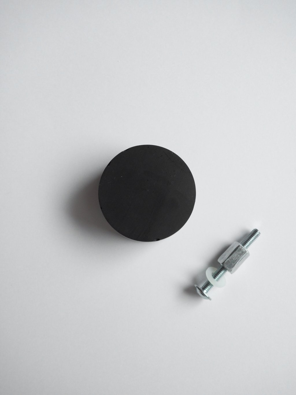 Na šroub navlečte plastovou podložku a umístěte jej z vnitřní strany nábytku. Z vnější strany našroubujte distanční matici a lehce utáhněte. Poté našroubujte úchytku a dotáhněte pomocí šroubováku.